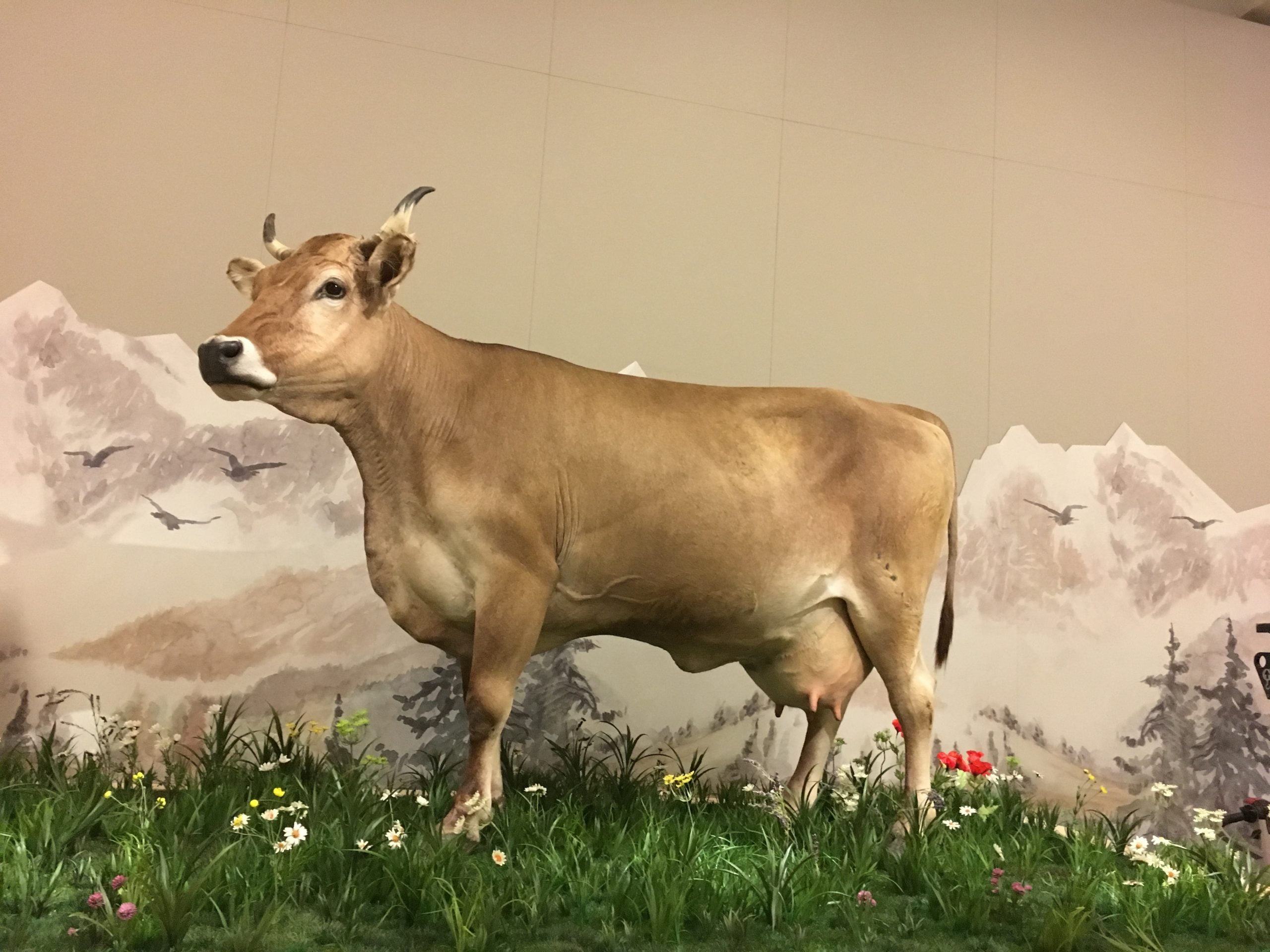Anlass: Ausstellung «Tierisch schweizerisch: Kuh, Murmeli, Steinbock und Bernhardiner»vom 30. Juni 2017 bis 11. März 2018 im Landesmuseum ZürichKunde: Martina Niervergelt, www.m-nievergelt.chAuftrag: Umsetzen der Landschaftsausschnitte für die Tierpräperate, Murmeltierhöhle in Box einbauen und Kuheuter für Melkstation herstellen.