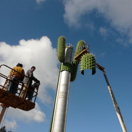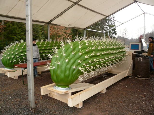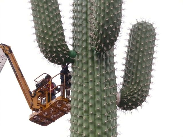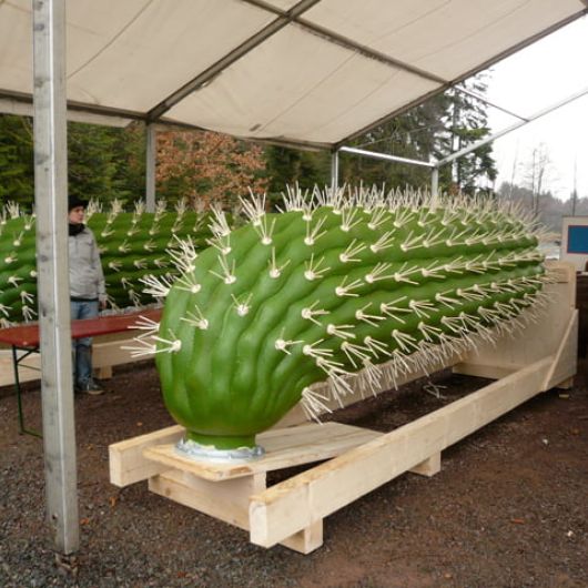 Auftrag: Entwickeln, herstellen und montieren eines Kaktus. Montage über Metallrohr.