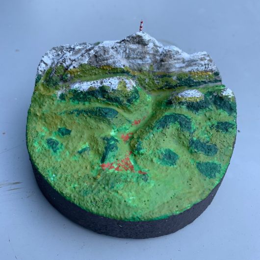 Auftrag: Landschaft mit Säntismassiv schnitzen, bemalen und in Schneekugeln einbauen