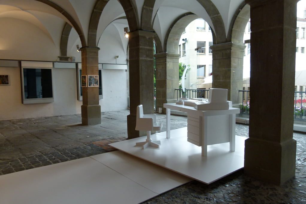 Kunde: RaiffeisenIdee und Gestaltung: Carlos MartinezAuftrag: Gestalterische Ausarbeitung in Zusammenarbeit mit Carlos Martinez Achitekten.Realisierung der Skulptur «Stadtlounge» in Styropor. Montage vor Ort. Tischmodell im Massstab 1:20 zur definitiven Formfindung und Präzisierung der Skulptur im Raum.