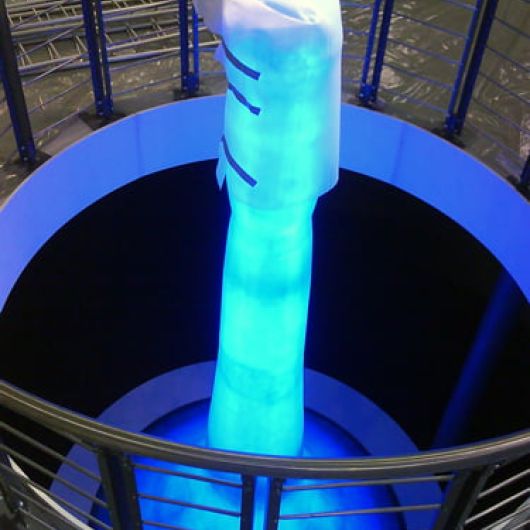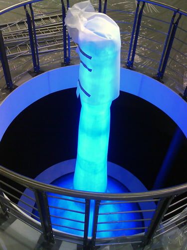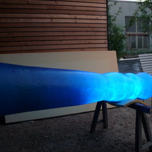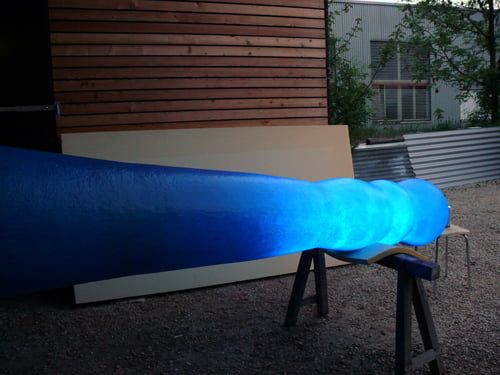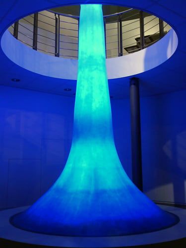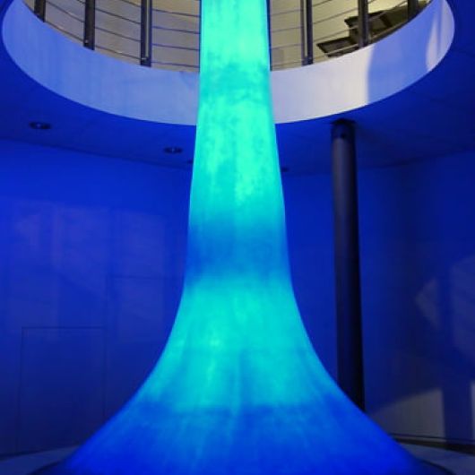 Auftrag: Wassertropfenskulptur 6m hoch, transparentes Material, blau gefärbt, für inwendige Beleuchtung.