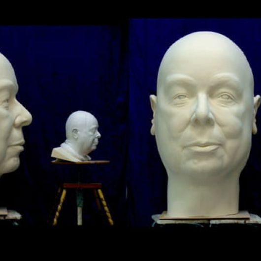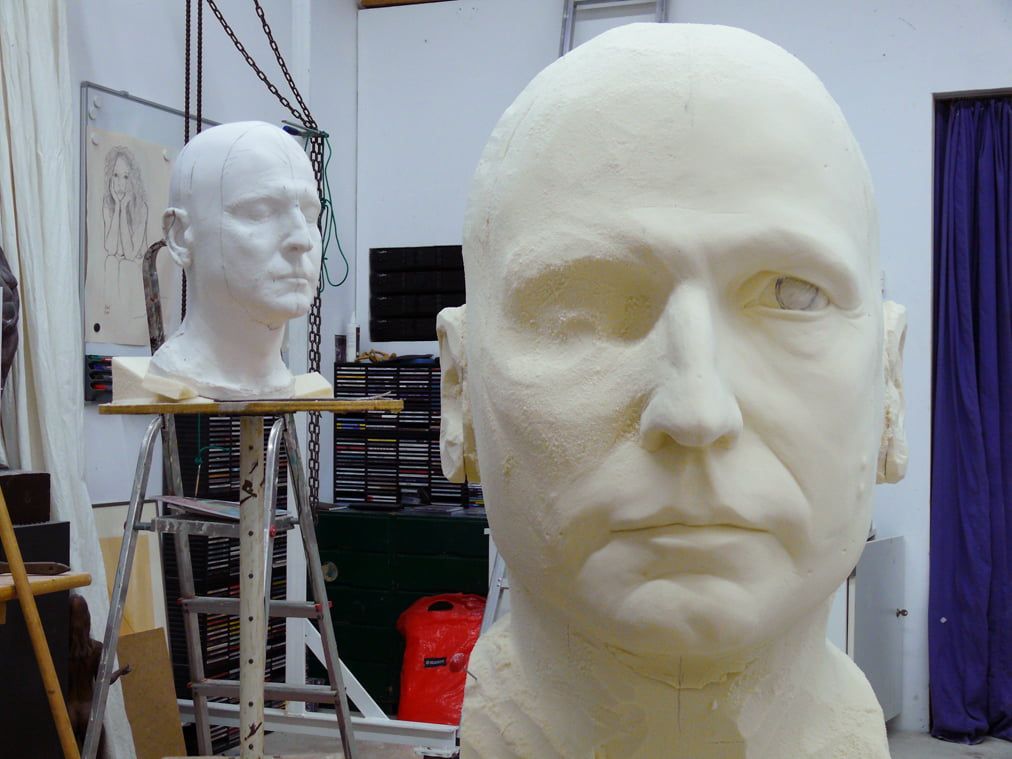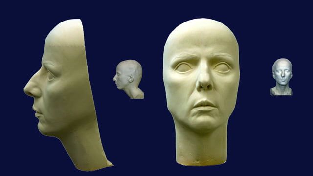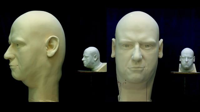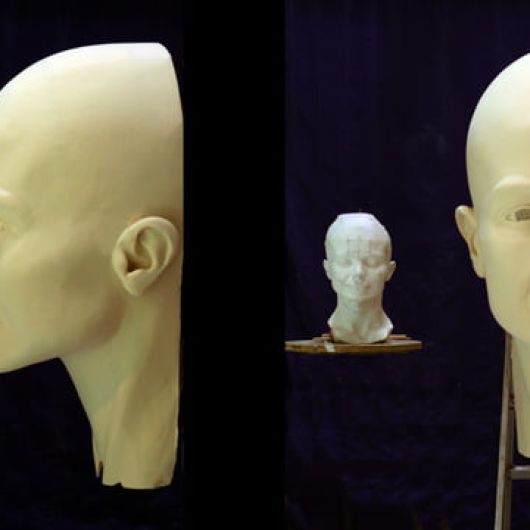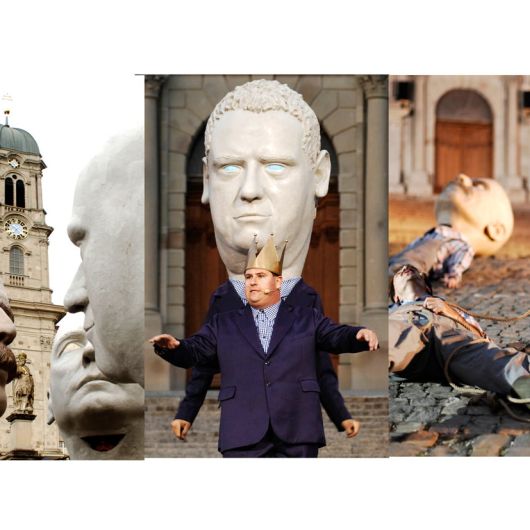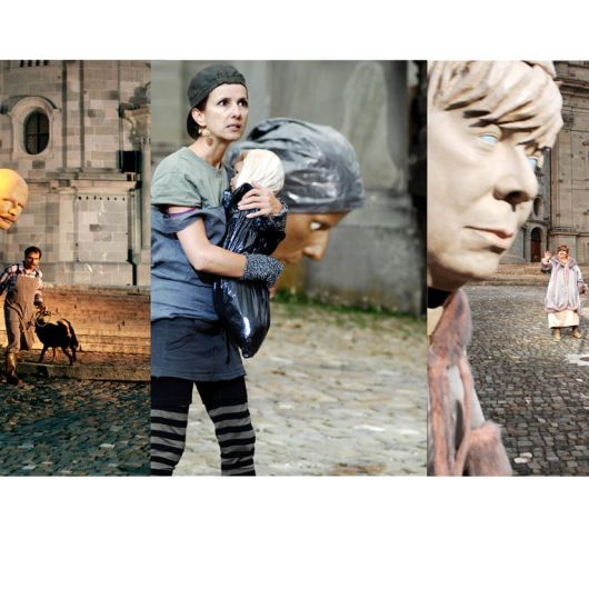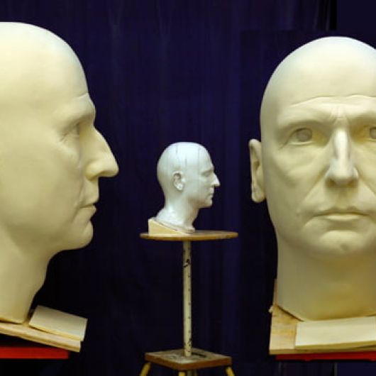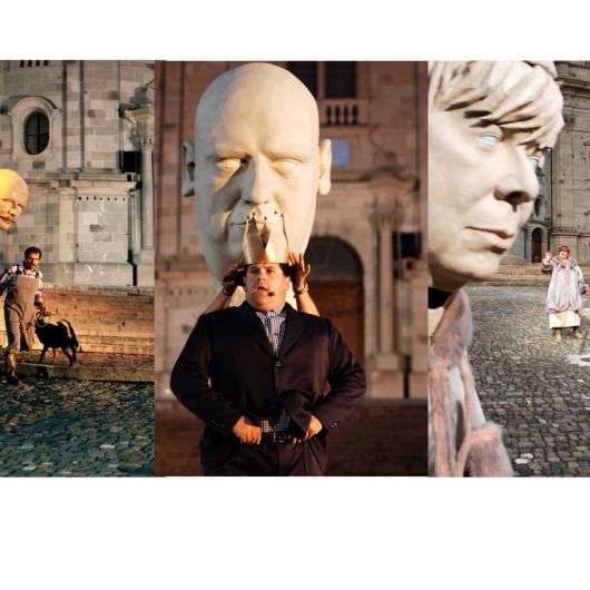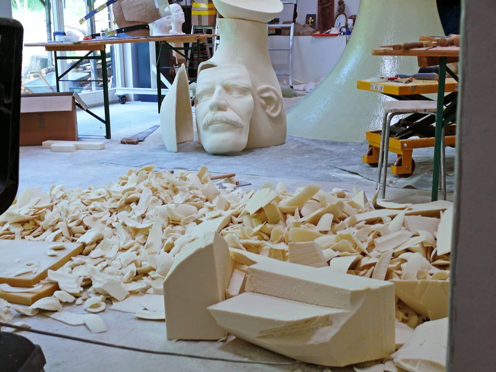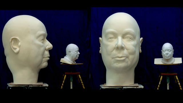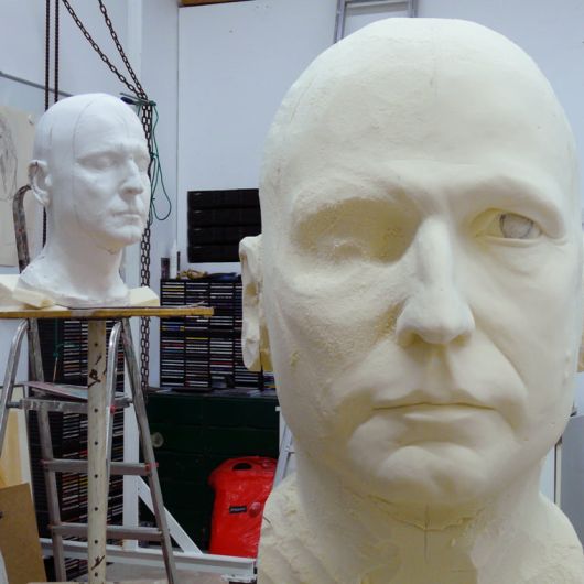Auftrag: Sechs 1m hohe Porträt-Köpfe schnitzen und aushöhlen. Als Vorlagen dienten Gipsabgüsse vom jeweiligen Schauspieler. Jeder Kopf sollte einen vom Regisseur festgelegten Ausdruck besitzen.